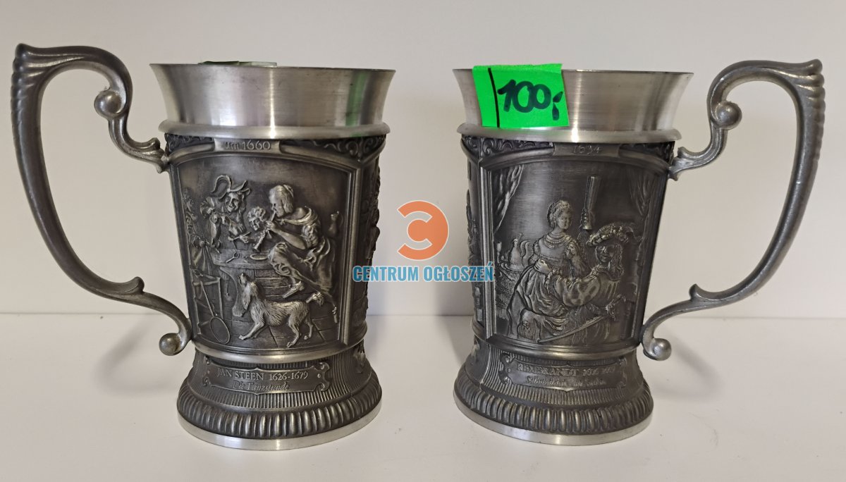 Dekoracyjny cynowy kubek kufel z motywami artystycznymi na wodę i wino.