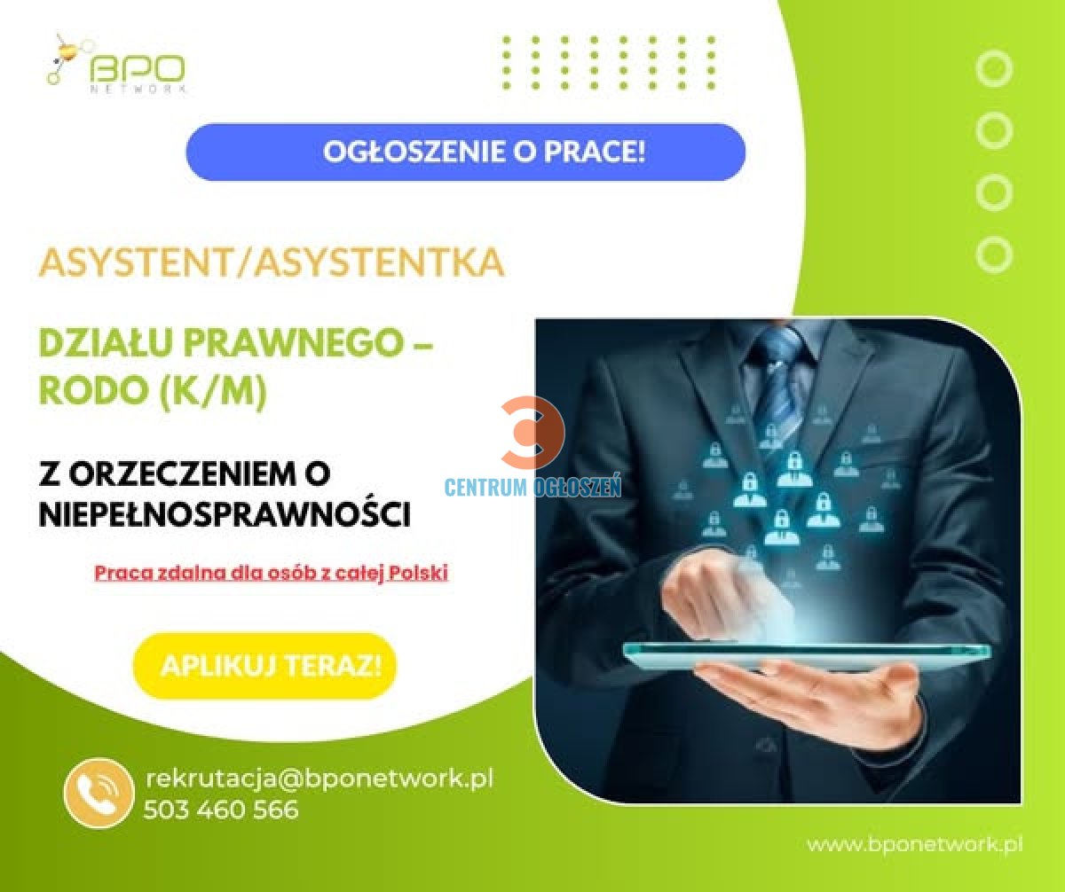 Asystent / Asystentka Działu Prawnego – RODO z orzeczeniem o niepełnosprawności